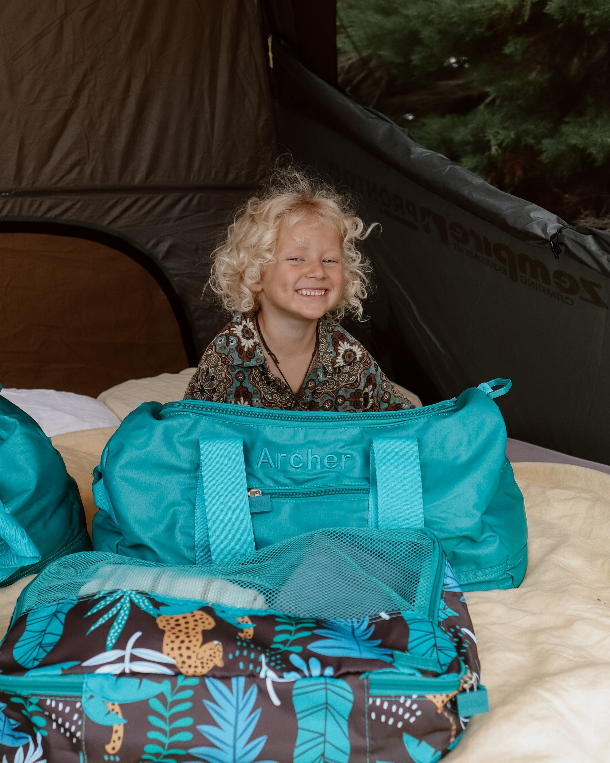 Favourite PJs, pillow, secret lolly stash, coolest outfit and more? You'll be packing this duffle for the Best. Sleepover. Ever. Made from a lightweight, durable and easily wiped down to clean recycled coated canvas, this duffle's every pocket, zip, strap and handle is designed for kids on the go.