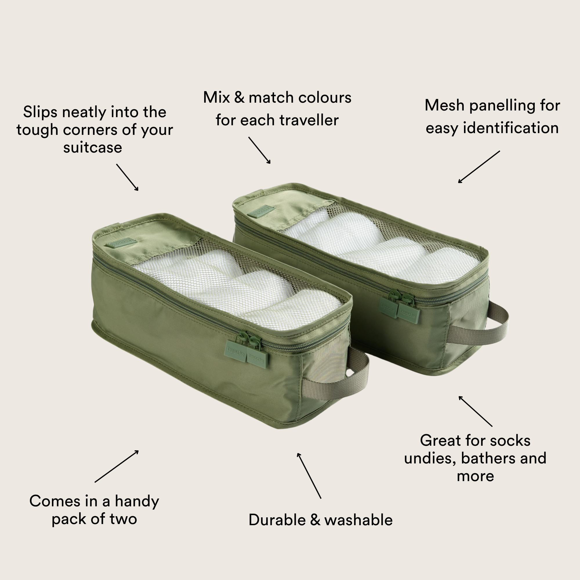 Small but mighty, these little organisers are your suitcase’s secret weapon. Designed for underwear, socks, swimwear, or other small essentials, they keep everything neat, tidy and right where you need it. Pack them together, stack them, or squeeze them into those awkward gaps.
