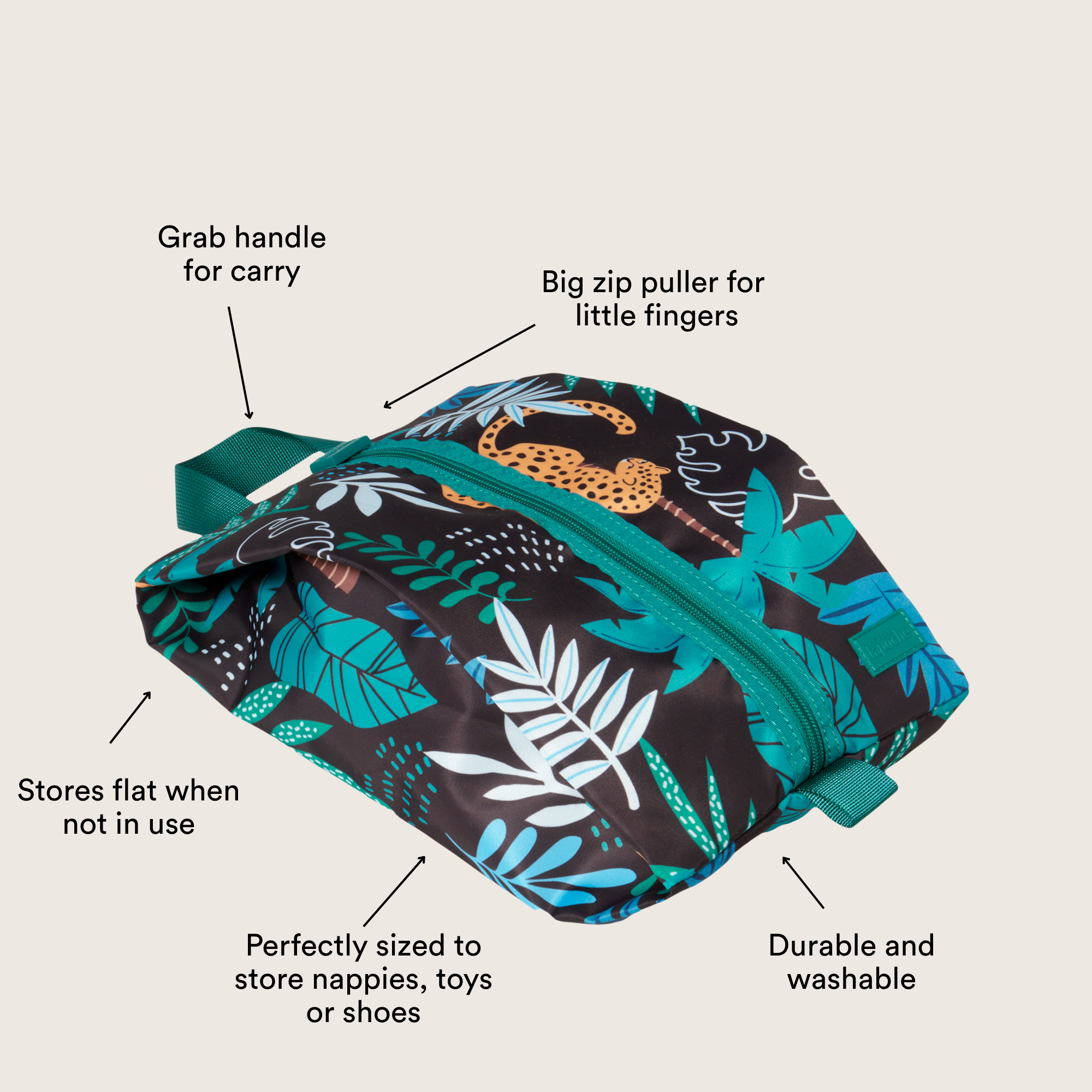 Lapoche's Play Pocket holds enough toys to keep kids entertained during trips, and doubles as a handy organiser for home. It's an ideal size for toys, nappies, books, a change of clothes on travel days, and for shoes.