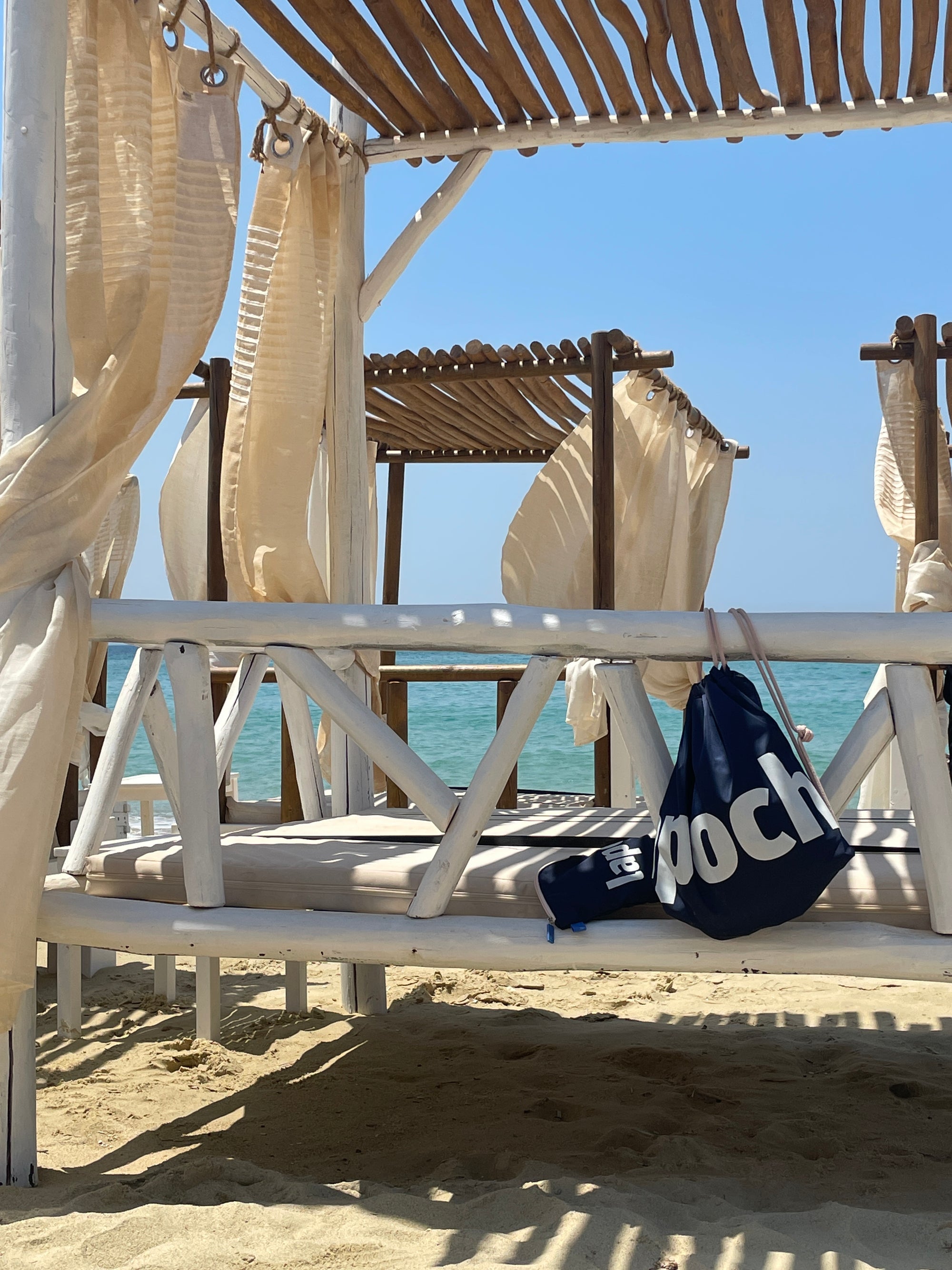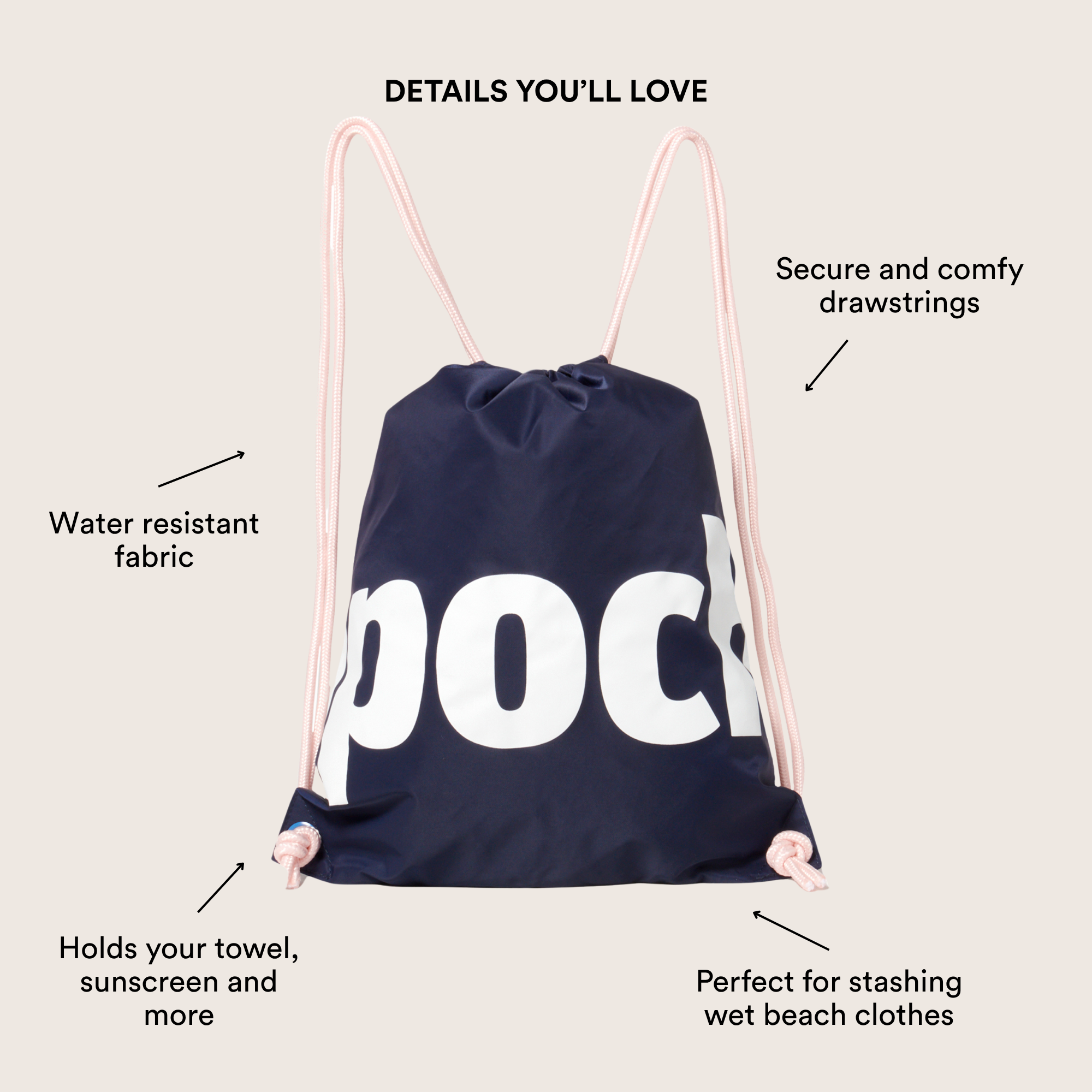Wet bathers and post-swim outfit ... never the two shall meet with this simple and stylish water-resistant drawstring bag. With enough room for your towel and bathers, it can be worn as a backpack, over the shoulder or popped inside your beach bag without worrying about water seeping through.